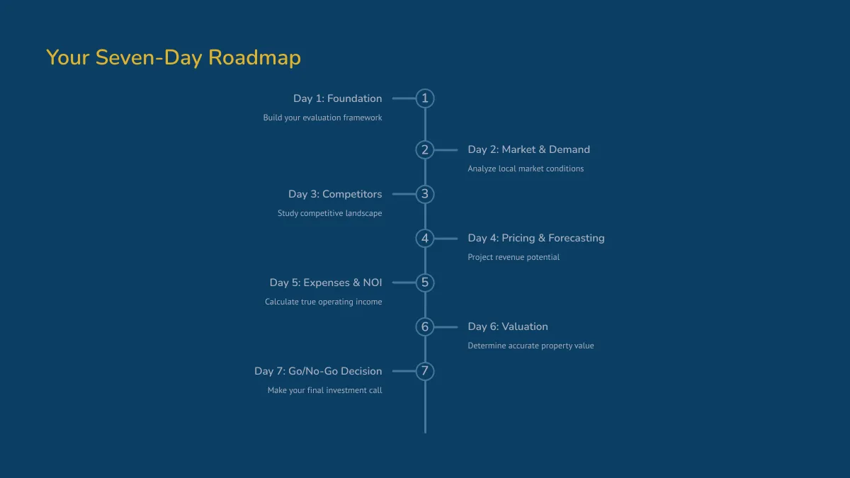 This 7-day program walks you through the exact process used by experienced operators and analysts — helping you assess any deal with confidence, clarity, and data-backed precision.
